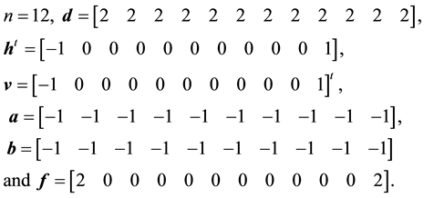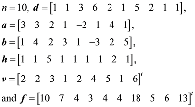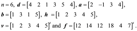 INPUT: Order of the matrix, n and vectors a, d, b, h, v.