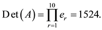 The determinant of the matrix A in (2) can be computed using the following numeric algorithm.