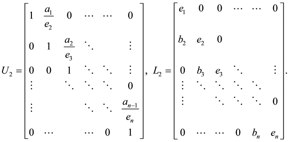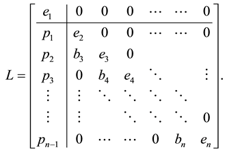 In many of these areas, inversions of tridiagonal matrices are necessary and different approaches are considered [7] - [10] in order to obtain such inverse. Some authors consider a general tridiagonal matrix of finite order and then describe the LU factorizations, determine the determinant and inverse of a tridiagonal matrix under certain conditions [1] , [2] and sometimes without any restrictive conditions [8] , [11] . The interested reader may refer to [12] - [23] .
