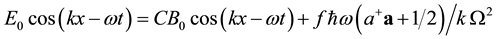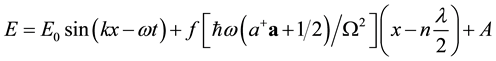 Creation and annihilation of particles are also examined from the point of view of increase or decrease of the excited states of the harmonic oscillator. Therefore, it is necessary to introduce the presence of oscillators in the system. Moreover, it is found that in the wave propagation process [7] , the conversion of fields into particles (or vice versa) is necessary to conserve the total energy of the system [8] . Therefore, the constant J, related with the creation-annihilation process, has been introduced in Equation (3)