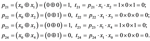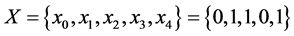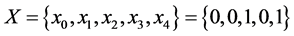 Let’s determine terms for sequences with the length of one. The sequence of senior bits is S0 = {x0} = {0}. Next, let’s compare X0 with each bit x1, x2, x3, x4: