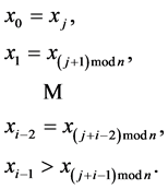 w, corresponding to Х = {0, 0, 1, 0, 1} set, has the minimal value in the ring. Really, w = 16 ´ 0 + 8 ´ 0 + 4 ´ 1 + 2 ´ 0 + 1 ´ 1 = 5 and the ring, where it is included, is {5, 10, 20, 9, 18}. We can see that 5 is the minimal value.
