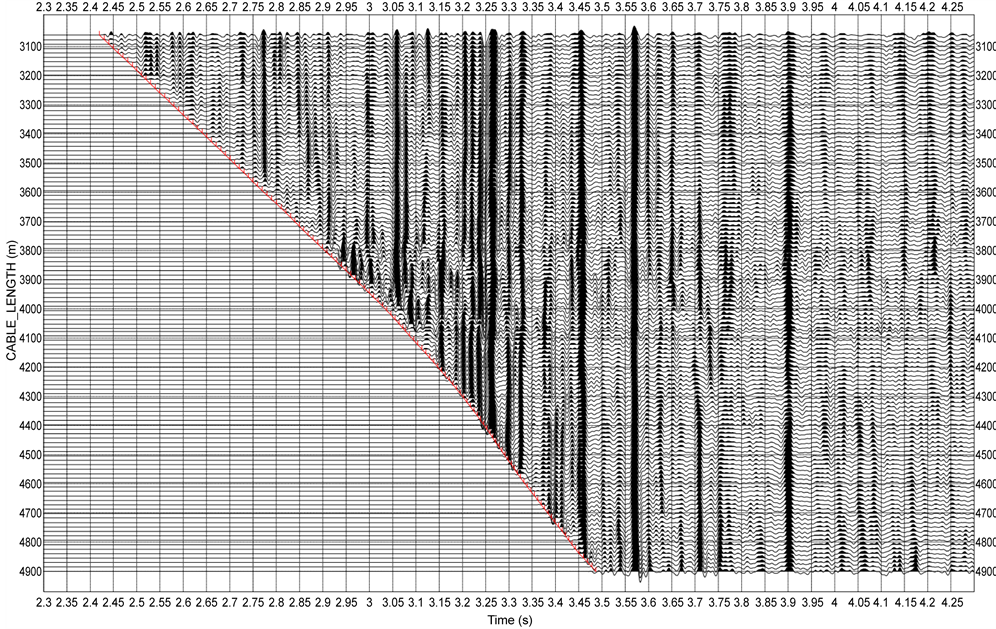 Figure 6. Final deconvolved upgoing wavefield (Zero Phase) and aligned in two way time (TWT).