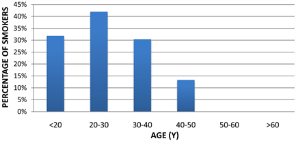 Figure 2. Histogram showing the percentage of smokers in different age groups.