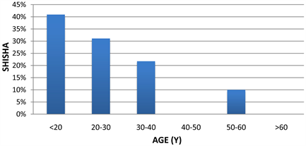 Figure 3. Histogram showing the percentage of “Shisha” smokers at different age groups.