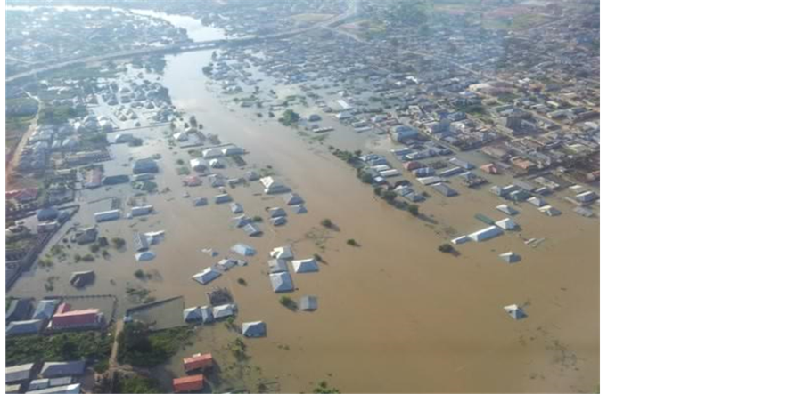Figure 1. Aerial photograph of flood submerged area in Kogi [8] .