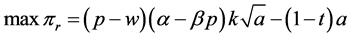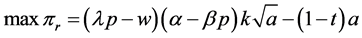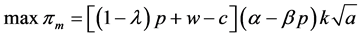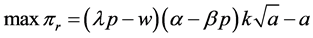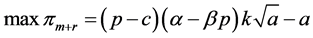 The system profits are described by Equation (3) and depend only on p and a. We hence have the following optimization problem: