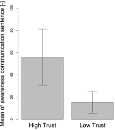 A high trust score group is expected to exchange more awareness communication than the low trust score group.