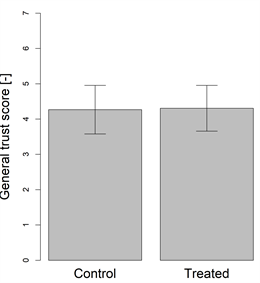 The treated group is expected to have a higher trust score than that of the control group.