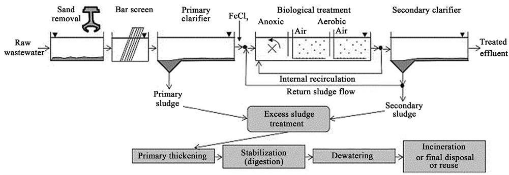 Figure 1. Wastewater treatment process: biological nutrient removal and chemical phosphorus removal [14] .