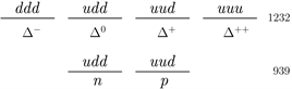Figure 1. Baryonic energy levels of doublet and quartet isospin states, and the quarks that compose each of them (see text).
