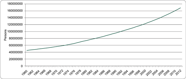 Figure 1. Nigerian population, 1960-2012. Source: [12] .
