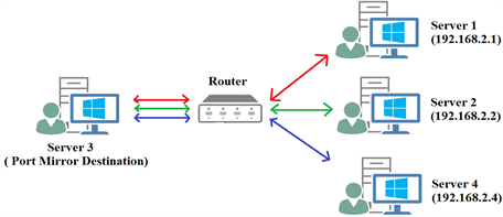 With the aid from Hyper-V, four virtual machines will be created and they are termed as Server 1 to 4 respectively. These servers are connected internally via a virtual network interface controller (NIC). It simulates a network of four computers, eachconnected to a router with Ethernet cables. The four virtual machines will have their individual local static IP address setup for detection and verification. Server 1 to 4 will be assigned to the IP addresses of “192.168.2.1” to “192.168.2.4” respectively as shown in Figure 1.