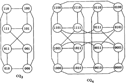 The crossed cube is an attractive alternative to hypercubes . The diameter of is approximately half that of . For more references, we can see [23]-[29] (Figure 1).