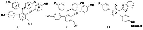 Figure 1. Shows the structures of 1 and 2 from Selaginella tamariscina and 19.