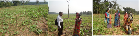 Figure 5. Mixed cultivation of saplings and vegetable and consultation of the field staff with the farmers.