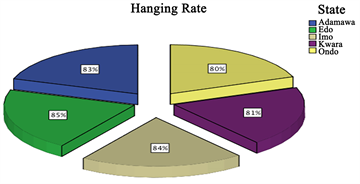 The LLINs average hanging rate from this study was put at 82.58% (95% CI, 81.02% - 84.20%) which is the same result obtained from wide survey done in Madagascar that reported hanging rate of 84.2% (95% CI, 81.2% - 87.2%) [18] . However, another study documented lower hanging rate of 64.0% which later increased to 68% following post campaign visit [19] . The difference in hanging rates may be attributed to different cultures of LLINs use as well as whether post -campaign visits to the households were done or not [20] .