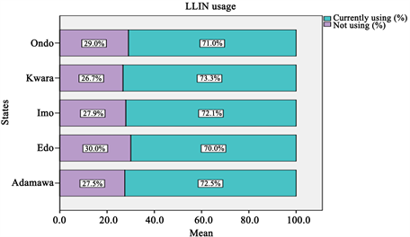 This study found that only 71.78% (95% CI, 70.80% - 72.68%) ended up using the nets leaving a sizeable 28.22% (95% CI, 27.3% - 29.2%) not using the nets due mainly to skin irritations. In a similar study in Enugu, 65% usage was documented which is close to this finding [15] . However, this finding is different from studies done in India which puts LLINs use at 59.4% but the author agreed that LLIN use varied from 41% to 94% between the studies clusters. In the same studies, 30% of nets owned by the households were out of use which concurred with our 28.22% finding [17] . These figures could reduce further if HH awareness of malaria prevention measures are done in the post campaign period [21] .