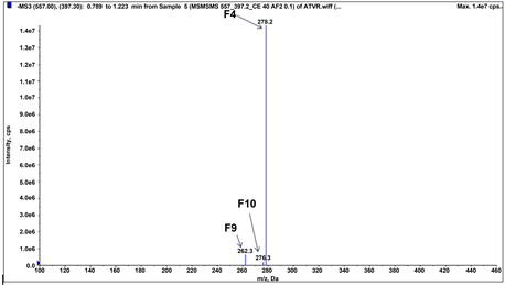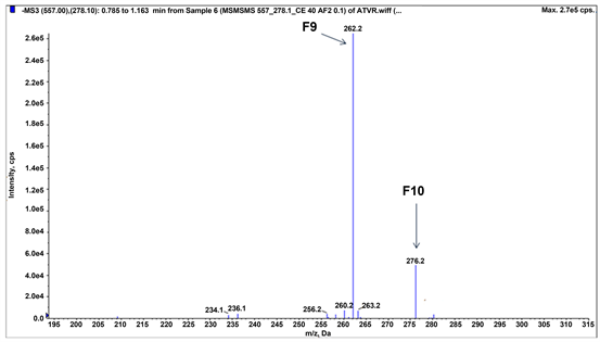 Figure 11. MS3 spectra of product ion m/z 278.10 (557.0).