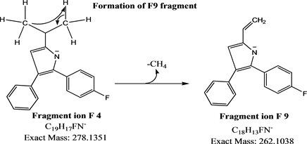 Figure 13. Proposed fragmentation pathway for fragment ion F9 and F4 of atorvastatin based on MS3 spectral data.