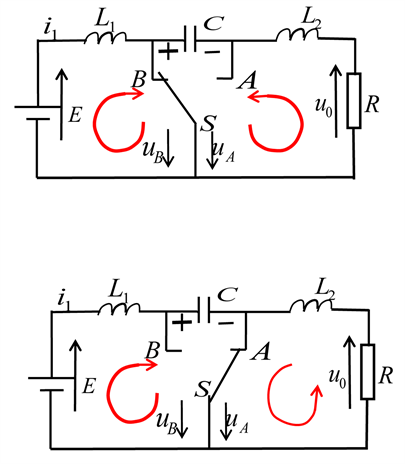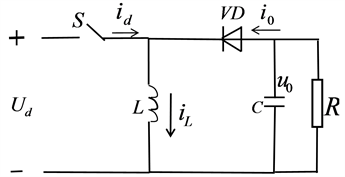 1) When S is on, the power supply U supplies power to the L via S, and the current is i1. At the same time, C maintains the output voltage constant and supplies power to the load R.