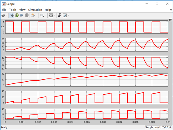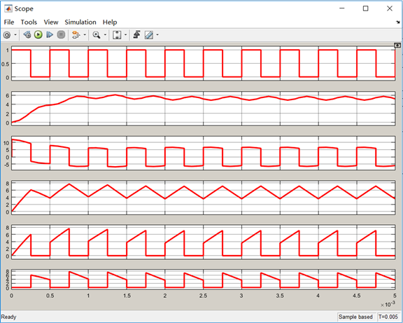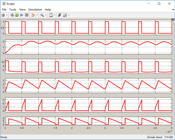 According to the above principle, the simulation models are established by using the power electronic module library in MATLAB/SIMULINK software, and the corresponding parameter is set to simulate the waveform diagram.