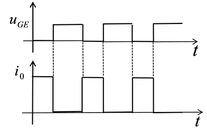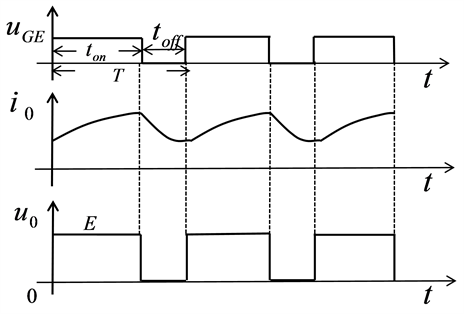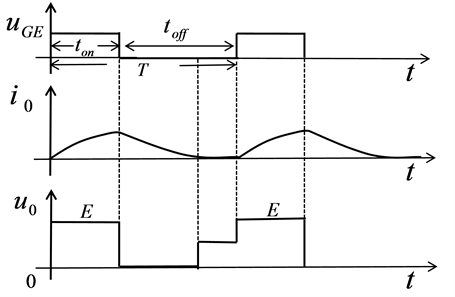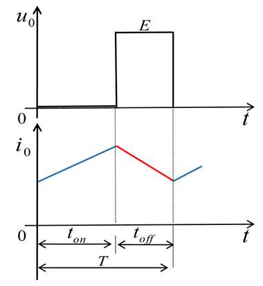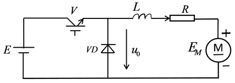 At time t = 0, the V driver is turned on and the VD is subjected to back pressure and turned off. The power supply E supplies power to the load, the load voltage U0 = E, and the load current i0 rises in an exponential manner (Figure 1).