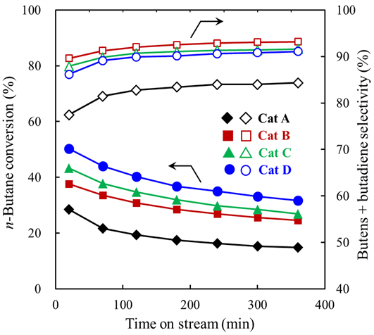 Figure 3. Dehydrogenation of n-butane over Cat A-D.