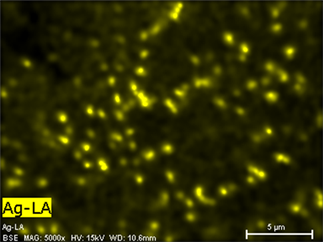 The SEM photographs of the PtAg/Al2O3 catalyst (Cat D) and the mapping results of Ag and Cl obtained by the SEM-EDX analysis are shown in Figure 4. Many spherical particles (0.5 - 2 μm) were observed in the SEM photograph (A). The EDX mappings (B and C) of Ag and Cl indicated that the most of the particles included Ag, and some of them included Cl. The molar ratio of Ag to Cl was 4.5 in the observed area. This fact meant that these particles consisted of AgCl and metallic Ag particles. It was suggested that the added Cl formed AgCl by reacting with the small Ag particles. The melting point of AgCl (455˚C) is lower than the reduction temperature in the catalyst preparation, therefore, the formed AgCl melted and agglomerated during the catalyst preparation. Finally, we concluded that the dramatic decrease in the coke formation was due to the formation of AgCl.