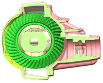 In order to reduce the number of cells and save time, it’s necessary to simplify the geometrical model of the hypoid gear (Figure 1). The whole model has been discretized with tetrahedral mesh (Figure 2). During the simulation, the meshes of the hypoid gear rotates in the closed domain at the predefined rotational speed.