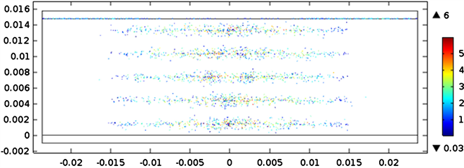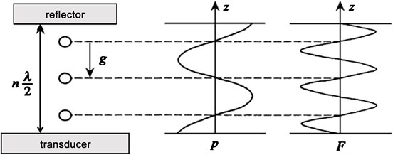 According to the results of the transient calculation, according to the simulation results Figure 5, it can be seen that the particles are stably layered due to the sound pressure radiation, and the number of layers is simulated by the cavity H and the natural frequency of the transducer vibrator is determined.