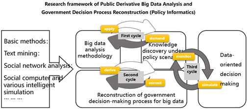 Third, using Big data simulation to drive performance evaluation and re-decision. Through the basic methods of social computing based on multi-agent simulation and so on, try to conduct a medium- and long-term evaluation of the common selection of common public issues and the decision-making effect. Based on this, the process of data analysis-driven decision-making is modularized and instrumentalized, and the government decision-making process is more scientific. Therefore, the sample survey method based on past policy evaluation is transformed into a comprehensive analysis method based on big data. A more realistic and representative policy evaluation result is obtained, which provides a scientific basis for policy revision.