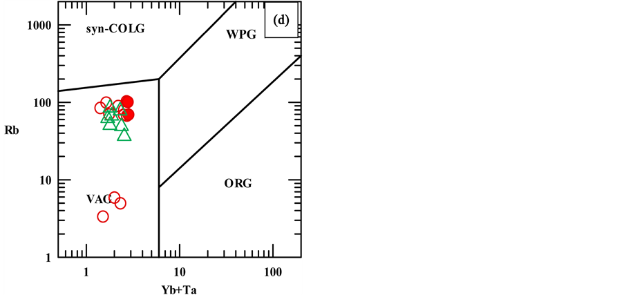 The Chahar-Gonbad Granitic Complex is normally made of a Medium-K calk-alkaline set (Figure 5(a)) in that quartz-diorite, monzogranite, and granodiorite were the predominant stone models. Area associations, geochemistry, and petrography these stones present community to interventions standard of the dynamic continental boundaries. Various investigations recommend that trace parts could be utilized to distinguish among the various tectonic contexts of granitoid magmas [11] [12] [13] . The Chahar-Gonbad granitoid in the geotectonic distribution of [14] [15] are incorporated as volcanic arc stones (Figures 6(a)-(d)). Moreover, as explained beforehand, granitoid of the Chahar-Gonbad field improved in LILE like Rb and Cs, concerning the HFSE, particularly Nb and Ti (Figure 7). Magmas via these geochemical characteristics are frequently ascribed to the subduction-associated conditions [16] . High Th/Yb rates related via special rates for Th/Yb are compatible via continental arc magmas (Figure 7).