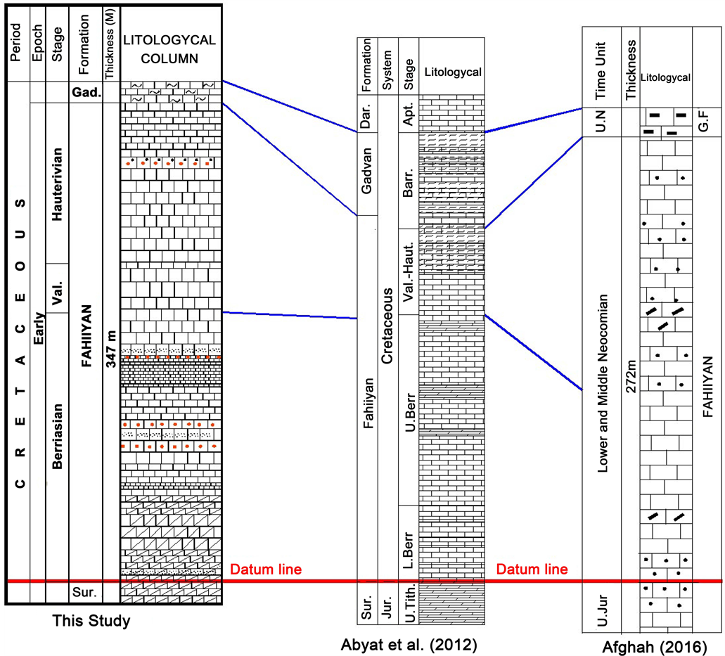 Studying the Biostratigraphy of the Jurassic-Cretaceous sequence reveals regression between the mentioned strata in different parts of Zagros as well as its better comparison with other regions in the Arabian Plate Aghanabati A. (1998) [1] .
