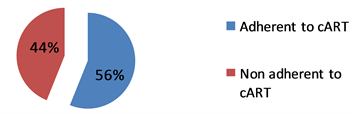 Generally in this study 44% (76) of the respondents were found to be non adherent to cART (Figure 1).