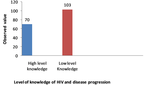 Most respondents 59.5% (103) were found to have low level knowledge about HIV and disease progression (Figure 2).