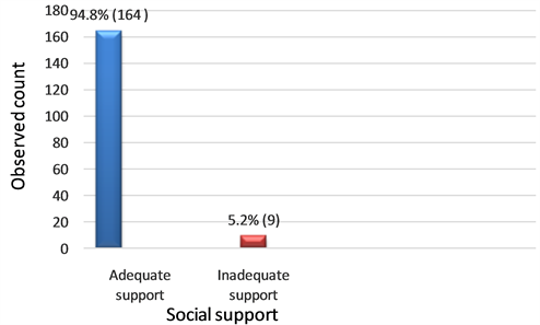 The majority of the respondents 94.8% (164) reported to have adequate social support and only 5.2% (9) had inadequate social support (Figure 3).