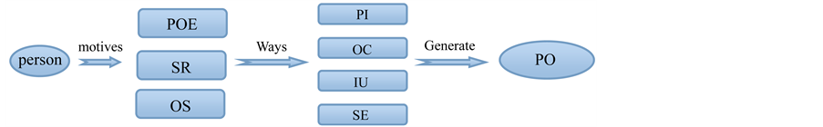 Even if people had the three basic motives of the psychological ownership, they cannot directly lead to the emergence of the psychological ownership. As a matter of fact, the basic motivations play a role of promoting in psychological ownership’s emergence, which needs ways to form. Pierce puts forward three possible ways of the psychological ownership’s emergence: objectives control (OC), intimate understanding (IU), personal investment (PI), based on which, Avery puts forward the fourth forming path: social exchange (SE) [8] . Therefore, the paths to generate psychological ownership are the following four: objectives control, intimate understanding, personal investment, social exchange. In addition, the emergence of psychological ownership is also influenced by the target object’s properties and the personal factors, environmental factors. Figure 4 shows the logic of psychological ownership’s formation.