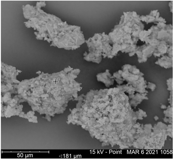The sludge landfill soil belongs to peat silt, and the micro-structure image of sludge soil is shown in Figure 2. It can be seen from the figure that the soil is mostly in the form of massive structure, and the surface of the soil particles is attached with fluffy materials. Only a small amount of soil is in the form of a