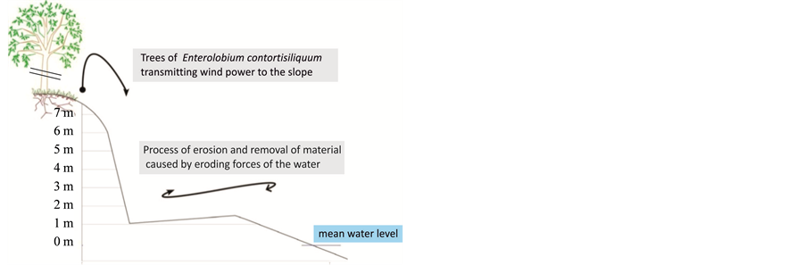 in the vertical axes, shifting its center of gravity in a less stable position. It captures and transmits wind power to the slope, creating a lever that certainly amplifies the dynamics of land- slides, triggered by the current of the stream (Durlo & Sutili, 2005).