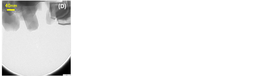 Figure 5. TEM images of the synthesized Li4Ti5O12 which is (A) 700 (˚C), by the 30 (m2/g); (B) 700 (˚C), by the 50 (m2/g); (C) 750 (˚C), by the 30 (m2/g), (D); 750 (˚C), by the 50 (m2/g) anatase TiO2.