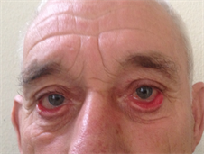 Figure 1. Bilateralectropion, irritated conjunctiva and the presence of tears.