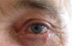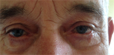 This study includes patients suffering from senile ectropion (Figure 1), who were treated surgically at Polyclinic “SHOSHI” in Prishtina. Our study includes 19 patients suffering from senile ectropion, out of which, 17 were older than 75 years old and in those patients the ectropion was preset on both lower eyelids, while 2 patients were under 75 years old and the ectropion was present only on one side lower eyelid.