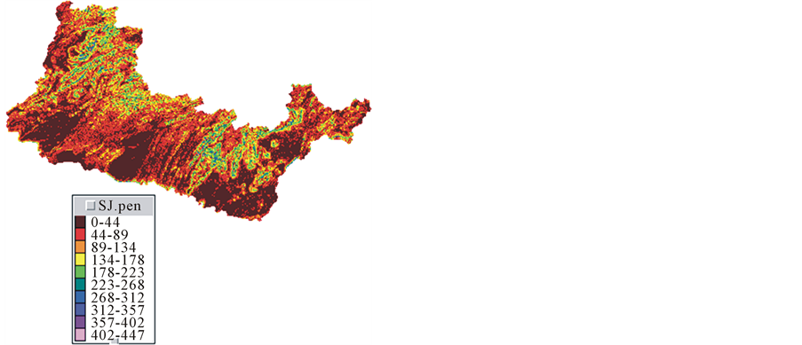 In this study, three different production classes have been identified from the topography (slopes), as a file reclassified between 447 classes of natural slopes. Low and middle runoff zone correspond to the plains with slopes from 0 to 200 m/km, while the high runoff zone corresponds to the high slopes mainly on reliefs.