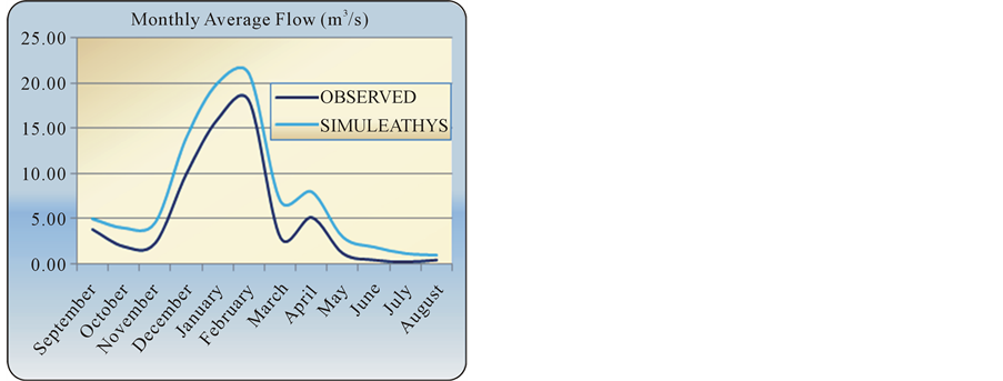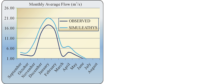 Figure 8. Simulation of mean monthly flows simulated in Sidi Jabeur station over (1996-2004).