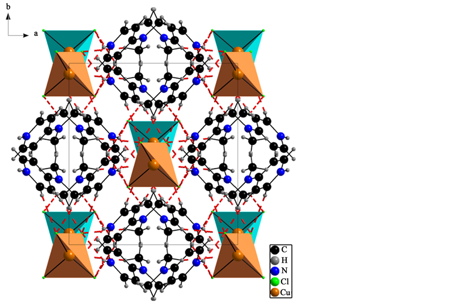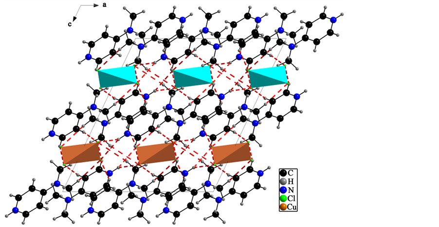 Non-covalent interactions, such as hydrogen bonding and π-π stacking, play a very prominent role in the organization of structural units in both biochemistry and material science [1] - [3] . These weak interactions exercise important effects on the architecture and properties of many materials in various fields such as biology [4] [5] and crystal engineering [6] [7] . The control of these interactions will be important for the design of materials with specific types of properties such as conductivity or magnetic behavior [8] . Several works were focused on copper (II) halides to study the influence of the organic cation features on the packing interactions that govern the structural organization and consequently on the properties of this kind of complex [9] [10] . Recently, some studies have examined how metal halide oligomers can be tied together via pyridinium derivative cations into chains, layers, etc. [11] . It is well-know that organic-inorganic materials with pyridine and its derivatives as template agents have led to the preparation of some materials with interesting physical properties [12] - [16] and biological activities [17] - [19] .