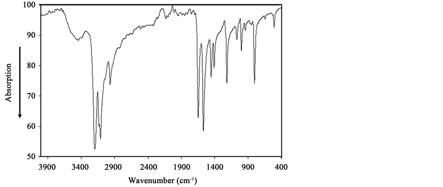 Figure 5. Infrared absorption spectrum of (C7H11N2)2CuCl4 salt.