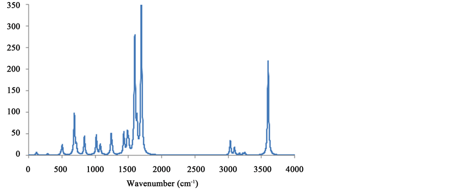 Figure 6. Calculated IR absorption spectrum of (C7H11N2)2CuCl4 salt.