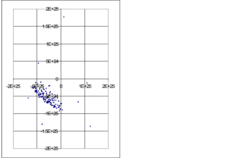 Table 1. Describes the simulated initial values used in SITA calculations. In this simulation Globular clusters (system * 109) are 34 no’s, galaxies (Ensemble) are 33, clusters of Galaxies (aggregates) are 33 no’s, Groups of Galaxy clusters (Conglomeration) are 33 nos. The name field gives list of various point masses. Columns heads have names “Mass simu(kg), xsimu (M), ysimu (M) and zsimu (M)”, The column “Masssimu(kg)” contains simulated values for Mass in Kg and columns “xsimu (M), ysimu (M) and zsimu (M)” contain x, y and z Cartesian coordinates in meters.
