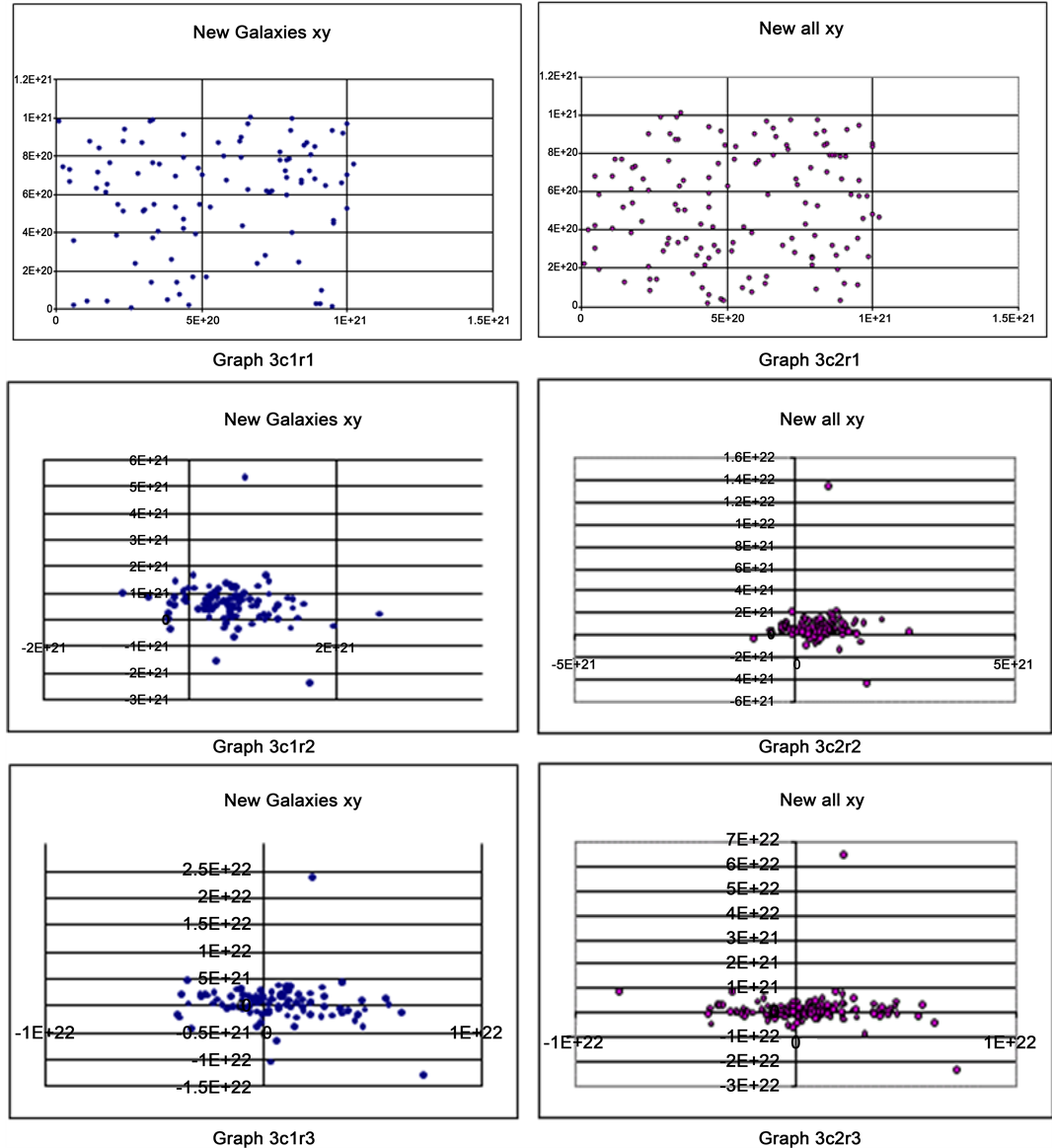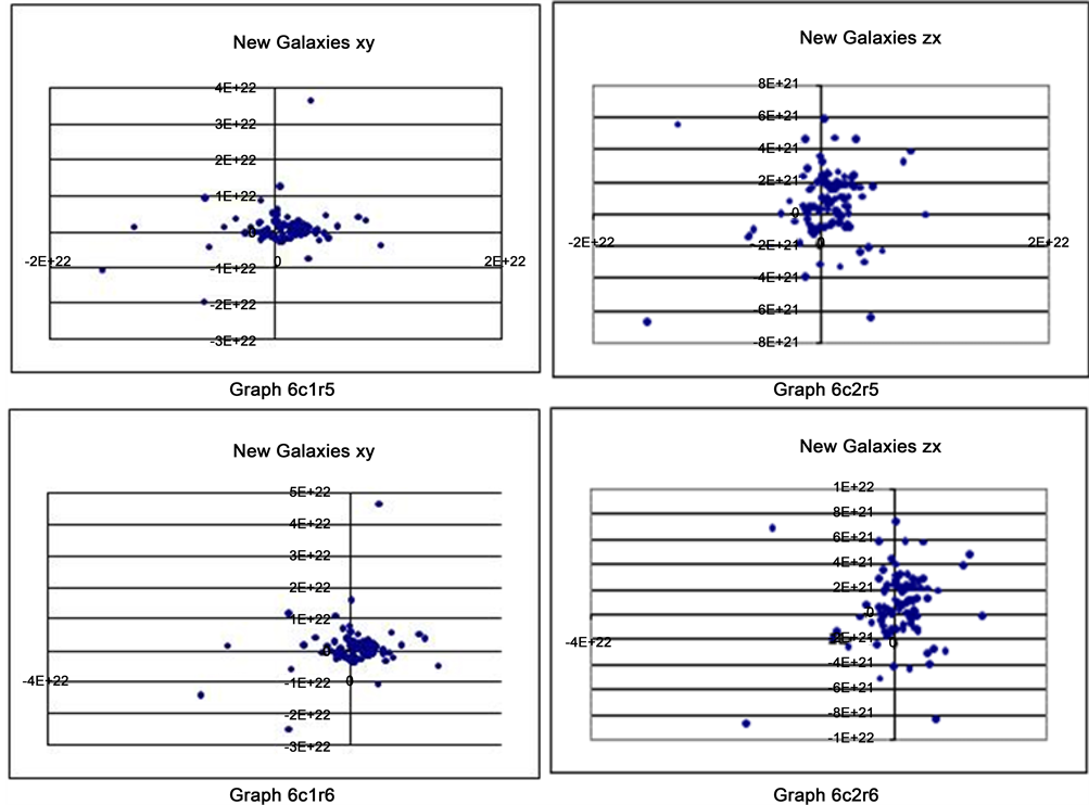 Graphs 6c1r3, 6c2r3 to 6c1r6, 6c2r6 show the positions after additional few iterations as shown in 6c1r2, 6c2r2 graphs. Here one can see similar disk formed earlier but AGAIN in different size and shape due to combined effect of mutual gravitation and acquired velocities called Universal Gravitation Force (UGF) acting on each point mass.